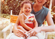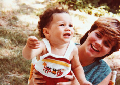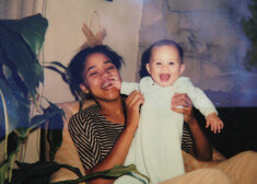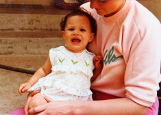Mazā Megana ar lielo māsu Samantu 1982. gadā.