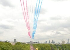 Turpinoties Elizabetes II 90.jubilejas svinībām, sestdien pie Bekingemas pils pulcējās pūlis, lai kopā ar augstdzimušajiem baudītu priekšnesumus.