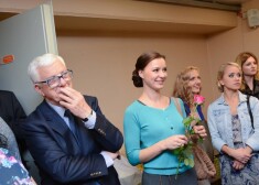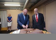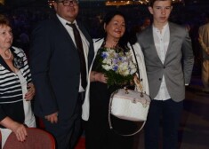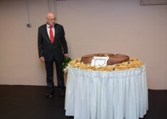 Pēc grandiozā lielkoncerta jubilārs Jānis Peters mūziķus un ģimeni cienāja ar svētku kūku.
