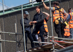 Pilnā sparā rit darbs pie „Neiespējamā misija 5” filmēšanas. Triku ar laišanos lejup virvē no Vīnes operas jumta, Toms Krūzs ...