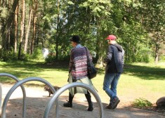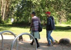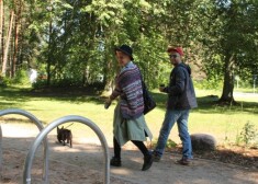 Ketija un Jānis Šēnbergi pastaigā ar suni Rozīni