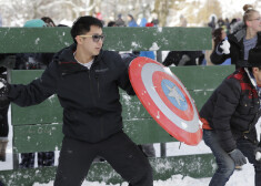 Sniega pikām lidojot no visām pusēm, daudzi slēpās aiz pašgatavotiem vairogiem, kamēr citi par aizsegu izmantoja parkā esošos piknika galdus.