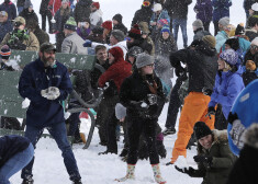 Pēc kāda vietējā iedzīvotāja uzaicinājuma sociālajā vietnē "Facebook" simtiem cilvēku brīvdienās sanāca uz kārtīgu sniega kauju Vašingtonas parkā.