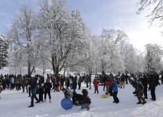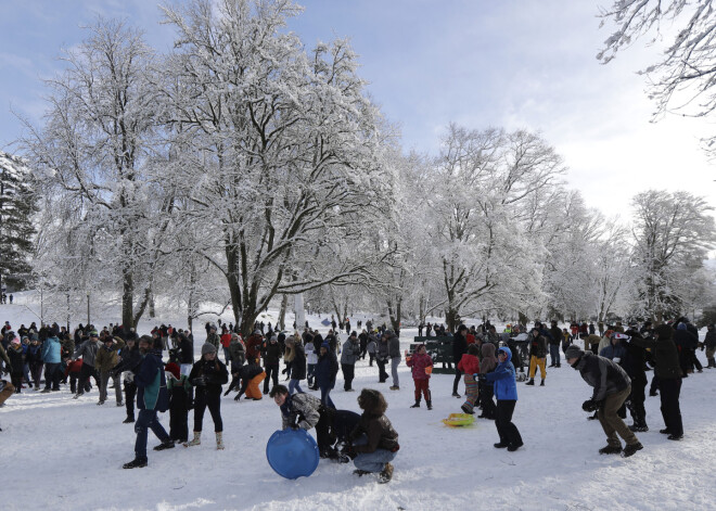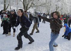 Iedzīvotāji metas sniega kaujā Vašingtonas parkā