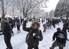 FOTO: simtiem kareivīgi Vašingtonas iedzīvotāji piedalījušies milzu sniega kaujā