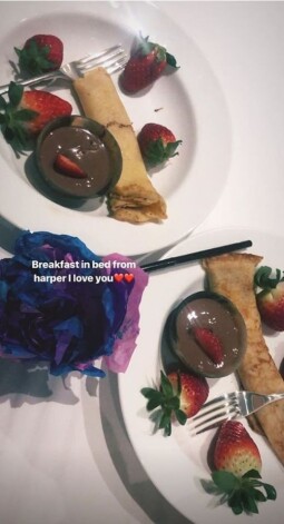 „Brokastis gultā no Hārperes. Es tevi mīlu,” Krosa pierakstījusi attēla komentārā, saviem 211 tūkstošiem sekotāju atklājot , kur pavadījusi aizvadīto nakti un kā iesācies viņas brīvdienas rīts.