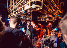 FOTO: stilīgie rīdzinieki izklaidējas rotaļīgā ballītē Vecrīgas kokteiļbārā
