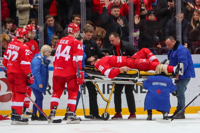Daugaviņš sestdien sērijas trešajā spēlē pret Sanktpēterburgas SKA otrajā trešdaļā guva smagu traumu un laukumu varēja atstāt tikai ar nestuvju palīdzību.