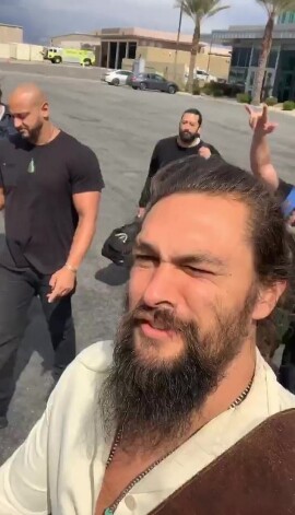 Nākamo video selfiju Momoa uzņēmis ar sevi un draugiem fonā.
