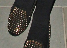 Tērpam princese bija pieskaņojusi matētas melnas zeķubikses un tumši zila velveta augstpapēžu kurpes ar siksniņu. Koptēlu Beatrise noslēgusi ar divām rokassprādzēm un melnu krokodilādas imitācijas „clutch” somiņu.