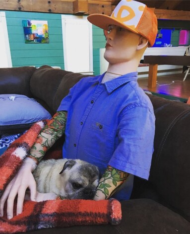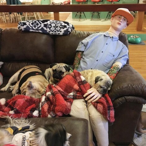 Kā stāsta Kristena, manekens lieti noder arī citiem ģimenes mīluļiem. Pāris vada īpašu patversmi veca gada gājuma suņiem, un pašreiz viņu pārraudzībā ir 32 suņi - seniori.
