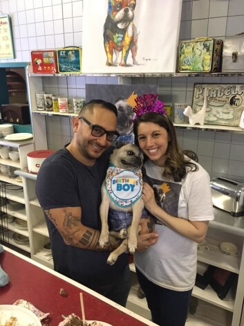 Pāris Rodailendā sava mopša Šortija vientulību prombūtnes laikā kliedē ar manekenu