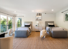 Ēkas augšējā stāvā ir arī divas viesu guļamistabas ar „en suite” vannasistabu. Šeit arī labiekārtota saimnieku guļamistaba ar atpūtas zonu, kurā ir stilīgs melnbalts kamīns, bet franču stila durvis ved uz privātu terasi, no kuras var nolūkoties uz baseinu, ko ieskauj eksotiski koki un tropu paradīzes stilā iekopta apkārtne.