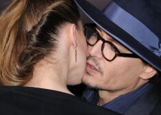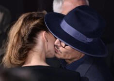Džonijs Deps skūpsta sievu uz sarkanā paklāja
