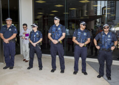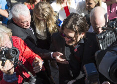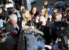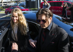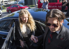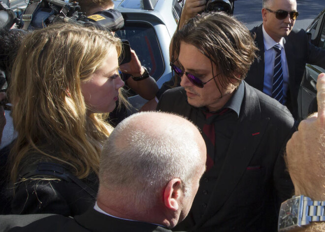 Džonijs Deps ar sievu Amberu Herdu dodas prom no tiesas sēdes Austrālijā