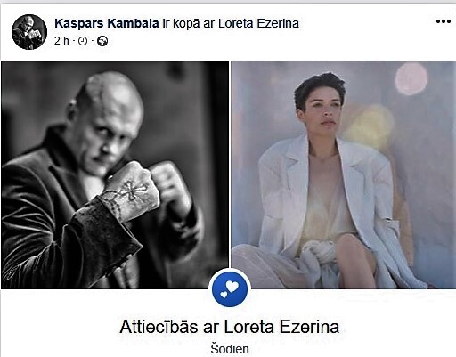 Bijušais basketbolists, tagad bokseris un aktieris Kaspars Kambala publiski paziņojis par savām jaunajām attiecībām. Sociālajā tīklā “Facebook” viņš ievietojis ziņojumu, ka ir attiecībās ar modeli un aktrisi Loretu Ezeriņu.