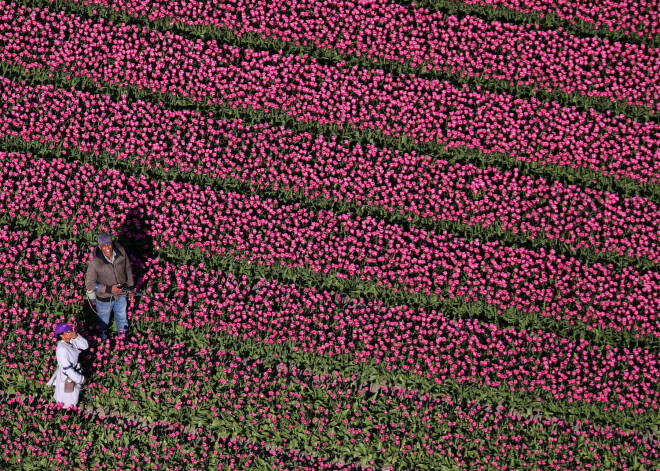 Krāšņi skati: Nīderlandē visās varavīksnes krāsās uzzied tulpju paklājs