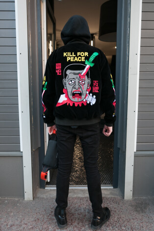 Kill for peace?! To lai katrs lasa un saprot, kā vēlas. Jaku pasūtīju pie viena mākslinieka no štatiem.