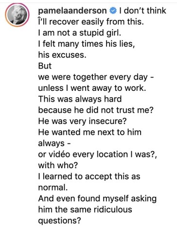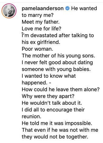 Pamelas Andersones sirds bija pilna. Pēc tam, kad publiskojusi šo ierakstu “Instagram” vietnē, viņa turpināja atklāt dažādas attiecību nianses sava ieraksta komentāru sadaļā.