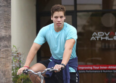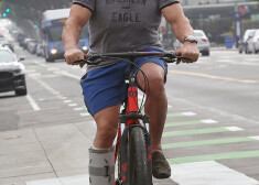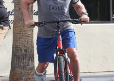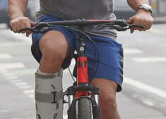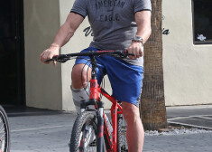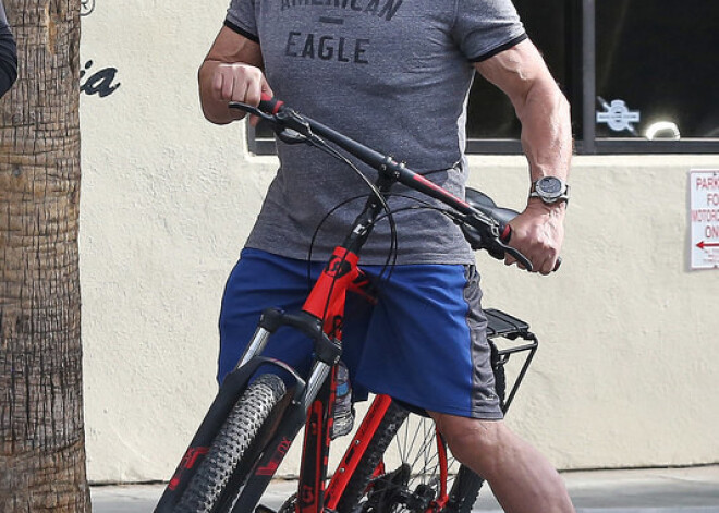 Švarcenegers turpina braukt ar velosipēdu pat ar lauztu kāju