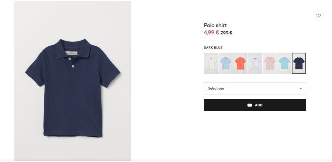 Tiesa šāds tumši zaļas krāsas bērnu polo krekliņš ir pieejams tikai iegādei Lielbritānijā. Potenciālie pircēji ASV un citviet Eiropā var iegādāties šī paša modeļa polo kreklu tumši zilā krāsā. Piedāvājumā ir arī gaiši rozā, gaiši zils un balts šāda modeļa polo krekls.