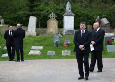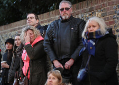 Cilvēki Oksfordšīrā pie Džordža Maikla mājas steidz nolikt ziedus, sveces un atvadu zīmītes.