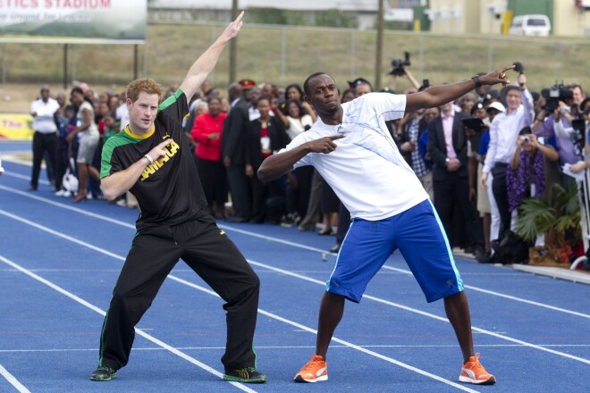 Princis Harijs un sprinteris Useins Bolts ir draugi kopš 2012. gada. Abi iepazinās prinča pirmās vizītes laikā Karību salās. Pirms Harija kāzām sporta čempions izteicās: “Es apsveru domu par trīs vecpuišu ballītēm. Man gribētos sarīkot vienu Kingstonā, vienu Lasvegasā un vienu Londonā. Es zinu, ka tas ir daudz prasīts, bet šīs ir viņa pēdējās dienas brīvībā. Es pats personīgi piezvanīšu Meganai un uzņemšos atbildību, lai sveiku un veselu nogādātu mājās pēc katras ballītes.”
