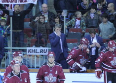 “Dinamo Rīga” trenera Sanda Ozoliņa emocijas spēlē ar Pekinas “Kuņluņ Red Star” 2016. gada 8. novembrī Arēnā Rīga.