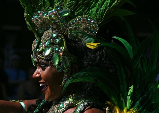FOTO: Londonas ielas ar krāšņiem tērpiem un Karību ritmiem izkrāso spožais Notinghilas karnevāls