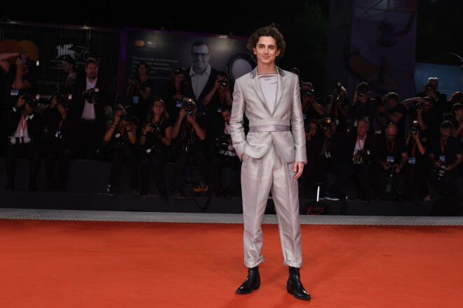23 gadus vecajam amerikāņu aktierim Timotijam Šalamē sarkanā paklāja pasākumi nav sveši. Viņš šim vakaram bija izvēlējies sudraboti pelēka zīda un satīna uzvalku, ko darinājis zīmols “Haider Ackermann”. Žakete ar jostu ievērojami atšķīrās no tām, kādas parasti saviesīgiem pasākumiem izvēlas Holivudas vīrieši. Šalamē žaketei bija pieskaņojis tāda paša auduma bikses (ar atlocītām starām!) un melnus zābakus. Var redzēt, ka Timotijam Šalamē interesē mode un patīk atšķirties no vairuma.