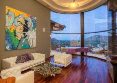 Vērīgākie amerikāņu TV skatītāji šo māju būs jau redzējuši TV reklāmās. Īpašums ir 990 kvadrātmetru liels. Mājā ir četras guļamistabas, sešas vannasistabas, apaļas formas viesistaba, mājas kinozāle ar skaņas iekārtām, kas iebūvētas ne tikai sienās, bet arī griestos. Pie mājas ir futūristiskas formas apsildāms peldbaseins ar melnu flīžu klājumu. Uz ēkas jumta ir terase ar āra virtuvi un nerūsējošā tērauda spa zonu.