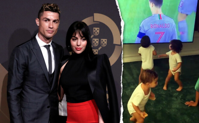 Džordžīna Instagramā publicējusi video, kurā nofilmējusi, kā futbola superzvaigznes četri bērni savās mājā Itālijas pilsētā Turīnā skatās Portugāles izlases spēli pret Lietuvu un aizrautīgi fano par tēti. Ronaldu šajā mačā guva četrus vārtus.