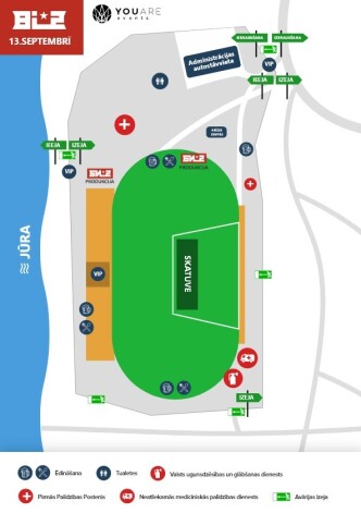 VIP biļešu īpašniekiem ieeja pa VIP skrejām, kas būs abās pusēs (gan galvenajos stadiona vārtos, gan vārtos no jūras puses).