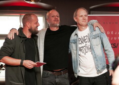 FOTO: grupa "Pienvedēja piedzīvojumi" jaunā albuma iznākšanu nosvin, skandinot piena glāzes