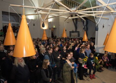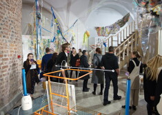 FOTO: ļaudis pulcējas Latvijas Mākslas akadēmijas simtgades izstādes “Academia" atklāšanā