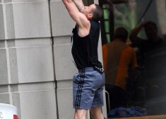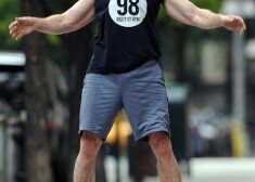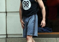 47 gadus vecais Hjū Džekmens parāda muskuļus. Pludmales FOTO