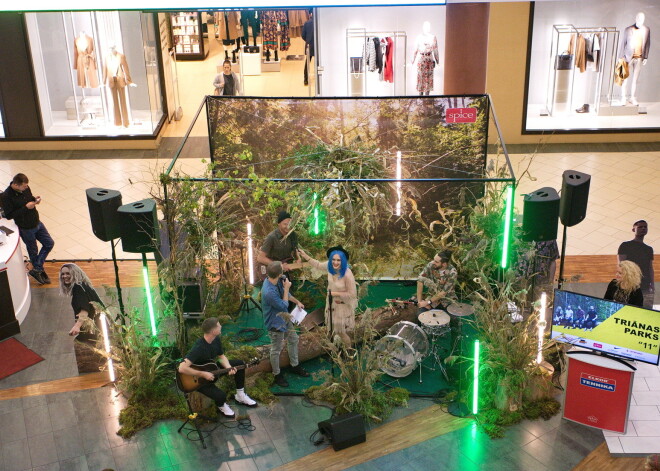 FOTO: grupa "Triānas parks" lielveikalā prezentē savu jauno albumu; uzdzied arī Busulis
