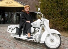 Vaira Vīķe-Freiberga uz motocikla