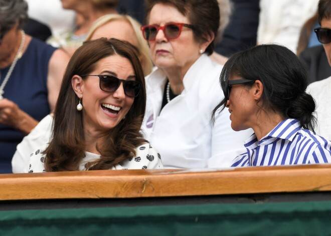 Hercogienes Ketrīna un Megana vēro tenisa spēli