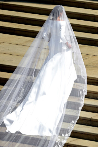 Lai gan Lopesas varones un Meganas kāzu kleitu silueti bija līdzīgi, hercogienes plīvurs bija krietni vien iespaidīgāks. To darināja neskaitāmas meistares un izšuvumos atspoguļoja īpašu saikni ar Lielbritānijas Nāciju Sadraudzības valstīm.