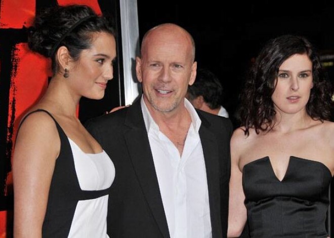 Brūss Villiss ar sievu Emmu Hemingu un vecāko meitu Rūmeru