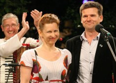 Zane un Vilis Daudziņi līksmā noskaņojumā Kalnciema kvartālā