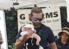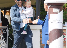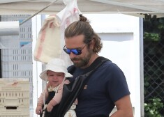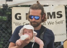 Holivudas aktieris Bredlijs Kūpers ar draudzeni krievu izcelsmes modeli Irinu Šaiku un nepilnus piecus mēnešus veco meitiņu Lea de ...