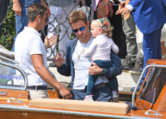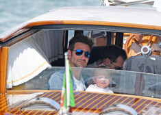 Irina Šaika un Bredlijs Kūpers ar meitu Venēcijā