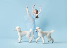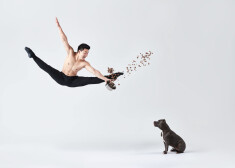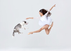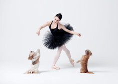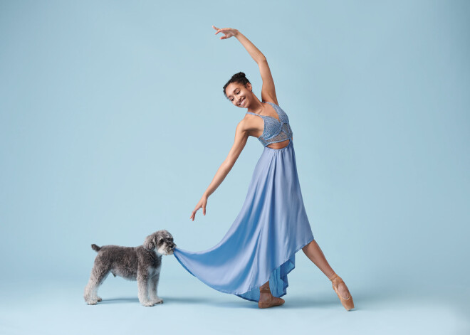 FOTO, kas liks pasmaidīt - baletdejotāji iepozē kopā ar suņiem