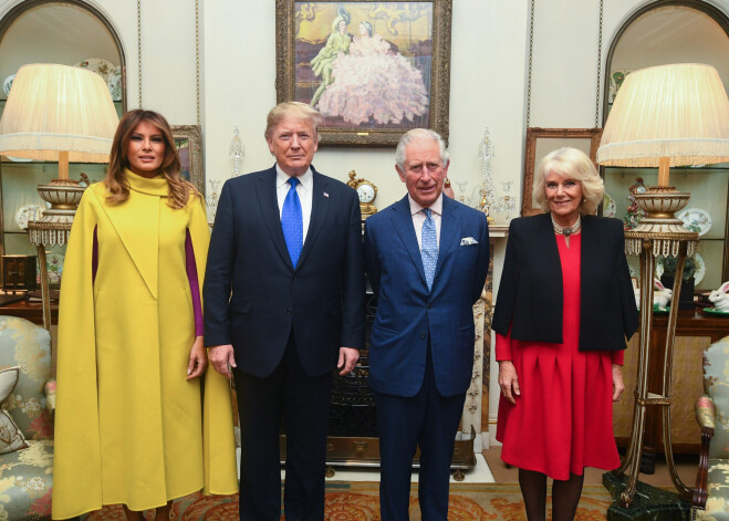 Paturpinot tēmu „Kā Tramps karalisko ģimeni satika”, der atzīmēt, ka Trampu pāris princim Čārlzam licis gaidīt gandrīz stundu uz tikšanos pie tējas tases. Saskaņā ar telekanāla CNN rīcībā esošo informāciju, Trampi tējas dzeršanu pametuši jau pēc 15 minūtēm. Savukārt žurnāls „Vanity Fair” raksta „Abi pāri iepozēja ātrai kopīgai fotogrāfijai pie kamīna un tūlīt pat izklīda, viņiem nesaskanēja.”