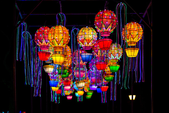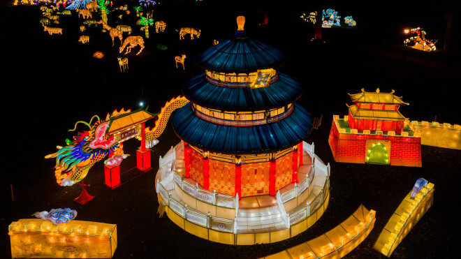 "Lielās Ķīnas laternas: Visuma zīmes" pārsteidz ar iespaidīgām gaismas laternām
