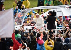 Cilvēku pūlim gavilējot, Aglonā ierodas pāvests Francisks