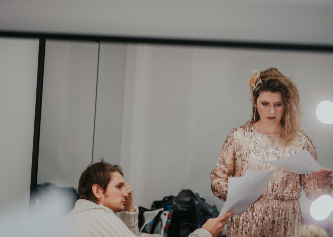 Publiskotas fotogrāfijas no TV3 Jaungada šova "Viņas svin skaļāk" vadītāju - populārā seriāla "Viņas melo labāk" aktieru Elīnas Vānes, Sarmītes Rubules, Māra Bezmera un Kristiana Kareļina - fotosesijas aizkulisēm.