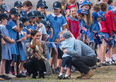 Megana un Harijs apskauj fanus Austrālijas un Jaunzēlandes vizītes laikā